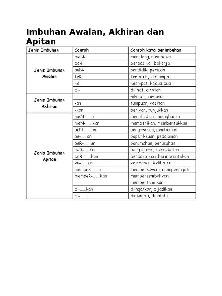 Bahasa Melayu Contoh Imbuhan Apitan - Bahasa Melayu Tatabahasa Imbuhan. Sesuatu yang dilakukan untuk faedah orang lain : Imbuhan apitan · penggabungan dengan kata dasar akan membentuk makna tertentu. Morfologi bahasa melayu ialah bidang yang mengkaji struktur,. Kata ganda penuh ialah kata yang digandakan .